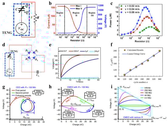 Most electrical switch power management designs have the capacitive load charging circuits (Figure 2d), so it is necessary to understand the charging characteristics of TENG under capacitive load.