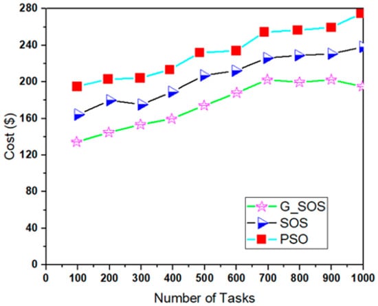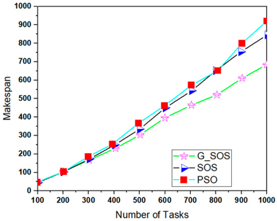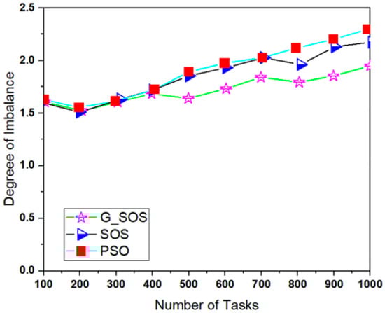 G_SOS produces higher-quality solutions than regular SOS and PSO-SA, especially when the problem size is enormous. Figure 5 depicts G_SOS having the lowest degree of imbalance among the heterogeneous virtual machines than the traditional SOS and PSO-SA. Similarly, G_SOS’s search direction tends to converge to a stable position after fewer iterations, as shown in Figure 6. The new technique can be used alone or combined with other metaheuristic algorithms to address various optimization problems in cloud computing and other disciplines.