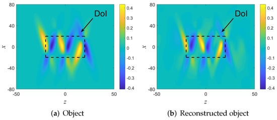 - The image: The imaging fields are calculated via (31), and finally the image is calculated via Equations (12)–(13).