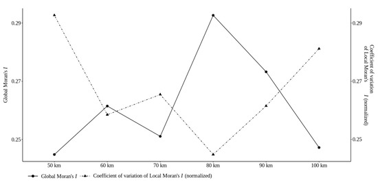 - n is the total observations; and, is the Moran’s LISA for each map unit.