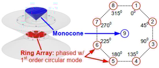 - Kolodziej, K.E.; Hurst, P.T.; Fenn, A.J.; Parad, L.I. Ring array antenna with optimized beam former for simultaneous transmit and receive. In Proceedings of the IEEE Antennas and Propagation Society International Symposium, Chicago, IL, USA, 8–14 July 2012; pp. 1–2. [Google Scholar] [CrossRef]