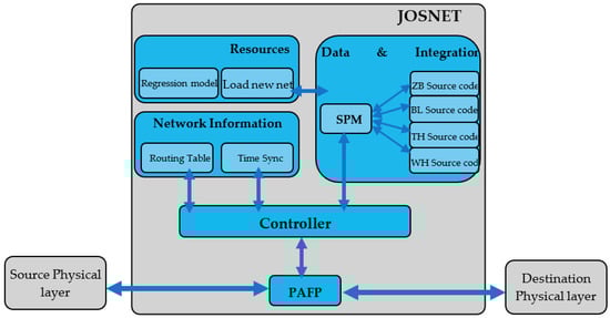 In this research, a stack architecture has been adopted to model a workflow relationship between each framework and component of the system [69,70,71]. The components depicted in Figure 1 are Packet Arrival and Forwarding Point (PAFP), Resources Module, Data and Integration Module, Network Information Module, and Controller.