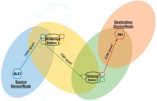 Qiao and Ma [29] proposed a Zigbee enhancement where a Bluetooth module can be added to a Zigbee network using a simplified physical model. The Bluetooth module or device is connected to the Zigbee network (end device, router, and coordinator) using a Universal Asynchronous Receiver/Transmitter (UART) portable USB terminal without changing the original Zigbee network structure and the ability to control or monitor the network over a handheld smartphone. Although the proposal does not include an implementation, it provides an acceptable conceptual groundwork for the integration of Zigbee and Bluetooth. Additionally, it will induce cost savings via the use of any smartphone for control and monitoring purposes. A connection is fostered via the internet, and this poses a major design drawback and flaws, because it will incur additional data transfer costs, thereby countering the initial idea of cost savings. Another approach to effect cost savings is to set up Bluetooth and Zigbee to communicate over the internet using a single gateway (instead of a gateway for each protocol) [30]. They demonstrated protocols integration by placing two Zigbee radio modules at the gateway where one radio module was to collect data at specific intervals while the other radio module was for streaming data. They argued that this design increased the Zigbee data transmission rate with reduced latency. Currently, smart IoT devices can access the internet using IPv6 or 6LoWPAN [31,32]. However, our research focused on M2M communications over Bluetooth LE, Zigbee, Thread, and IEEE 802.15.4 networks. Additionally, this research aims to build a gateway or switch that allows multiple wireless protocols to understand each other through a brokerage interpreter that “interprets” data or requests sent from one protocol so that it could be understood by the other protocols.
