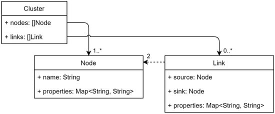 The infrastructure model is depicted in Figure 2. The aim of this model is to represent nodes throughout the Cloud–Edge continuum by providing a single generic model instead of several more specialized ones for each layer. This avoids the need of partitioning the infrastructure by layers to achieve the desired single-partition infrastructure.