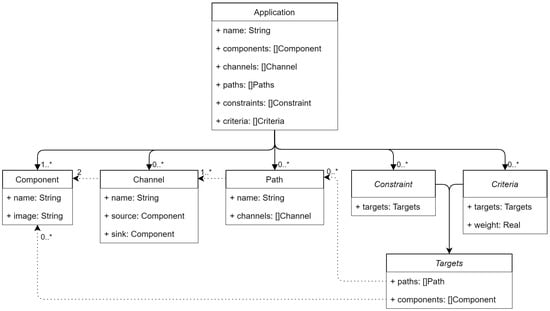 This model allows the users to define their applications’ components, relations, and QoS (FR2). This application definition will be used by the application scheduler in conjunction with the monitoring data from the infrastructure model to determine the optimal deployment for each of the components.