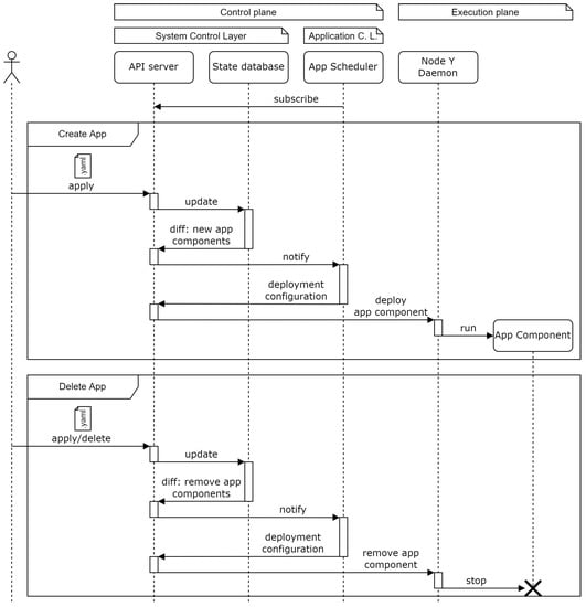 Once the application scheduler is deployed, the application components can be deployed according to the sequence diagram in Figure 5.