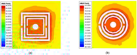 The simulated field distribution of (a) Rectangular rings; and (b) Circular rings.
