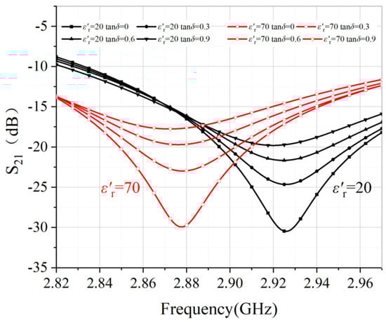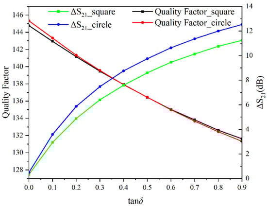 Therefore, the loss tangent can be calculated by using the quality factor Q and the transmission coefficient . It is deduced that the larger variation in (), the higher the measurement sensitivity.