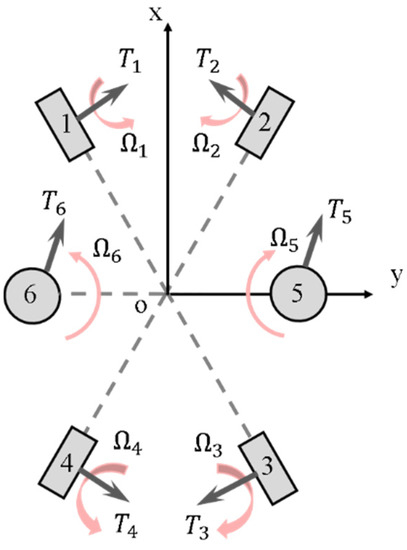 The free body diagram of the six propellers is shown in Figure 6.