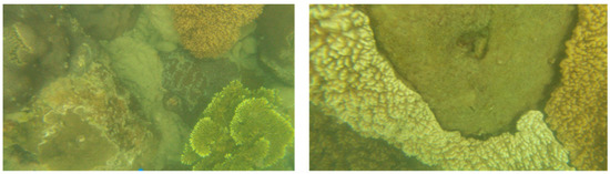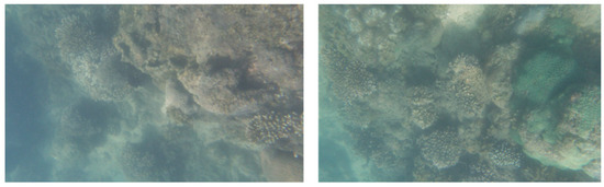 The function and reliability of Coral-AUH were tested in a field test in the waters of Luhuitou and Yazhou Bay in Sanya City. Coral reef ecological restoration areas located in the Nanhaisuo National Coral Conservation Area and the Dongluo Island Coral Restoration Area were selected as test sites (shown in Figure 15). In the field test, Coral-AUH successfully cruised to the desired site with a preset route. The photos taken by Coral-AUH are shown in Figure 16 and Figure 17, and the water quality data collected by the sensor group are shown in Table 3 and Table 4.