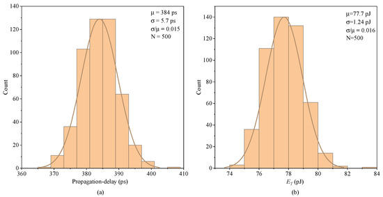 Monte Carlo simulation: (a) Average propagation delay, (b) .