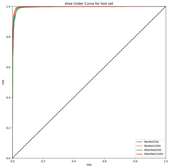 Area Under the Receiver-Operating-Characteristic Curve for the Test Set. Note: TPR True Positive Rate (Sensitivity), FPR False Positive Rate (1—Specificity).