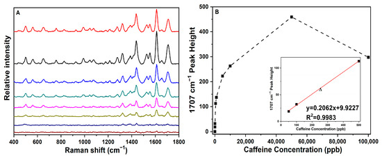 3.3. Effects of pH on Caffeine Measurements with the SERS-Active Substrate