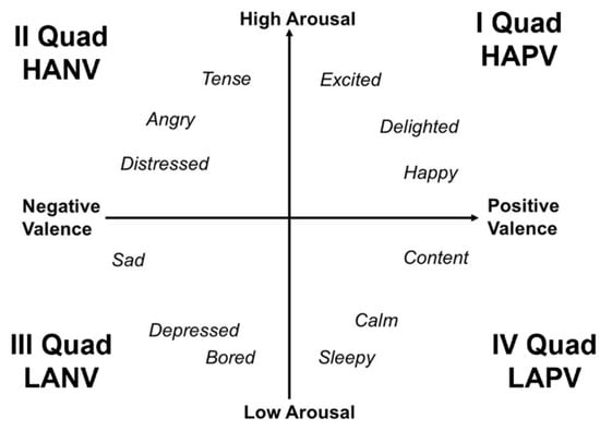 - Russell, J.A. A Circumplex Model of Affect. J. Personal. Soc. Psychol. 1980, 39, 1161–1178. [Google Scholar] [CrossRef]