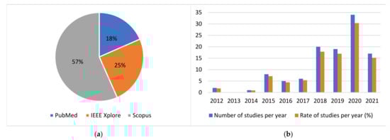 Firstly, the most suitable databases and registers of the respective literature were selected. The authors opted for three popular academic citation databases, which guarantee the high quality and impact of the considered papers. The first one is PubMed, one of the most popular databases of biomedical literature. The second one is IEEE Xplore, which is a well-known database of technical literature and the third one is Scopus, which indexes academic articles from a wide range of research fields.