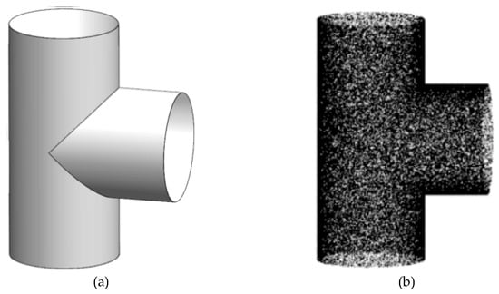 The three-way tube is one of models in our experiments. (a) is the CAD model of the three-way tube, and (b) is the point cloud model of the three-way tube after sampling.