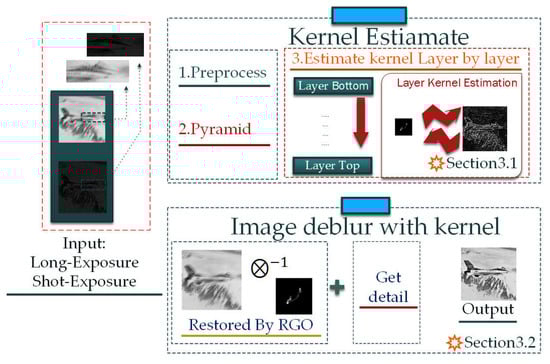 - Cui, G.; Hua, W.; Zhao, J.; Gong, X.; Zhu, L. A motion deblurring method with long/short exposure image pairs. In International Conference on Optical Instruments and Technology 2017: Optoelectronic Imaging/Spectroscopy and Signal Processing Technology, Proceedings of the International Conference on Optical Instruments and Technology 2017, Beijing, China, 28–30 October 2017; International Society for Optics and Photonics: Bellingham, DA, USA, 2018. [Google Scholar]