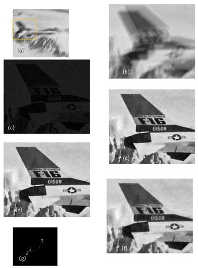 - Zhang, G.M.; Gao, S.; Yin, Z.S. Motion blur restoration method of remote sensing image based on fuzzy image and noise image. Electron. Des. Eng. 2017, 25, 82–86. [Google Scholar]
