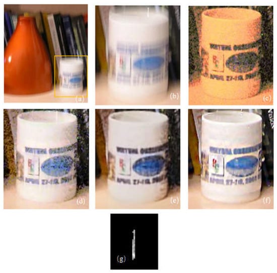 - Yuan, L.; Sun, J.; Quan, L.; Shum, H.Y. Image deblurring with blurred noisy image pairs. In ACM SIGGRAPH 2007 Papers, Proceedings of the SIGGRAPH07: Special Interest Group on Computer Graphics and Interactive Techniques Conference, San Diego, CA, USA, 5–9 August 2007; Association for Computing Machinery: New York, NY, USA, 2007. [Google Scholar]