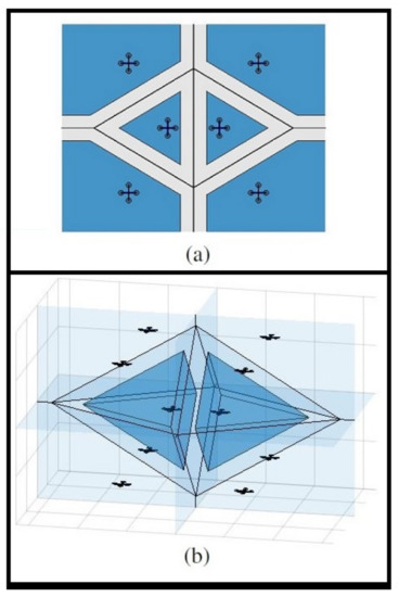 Each Voronoi cell in an n-dimensional space is a convex polytope bounded by a number of ()-dimensional convex polytopes. For a group of vehicles in three-dimensional space, the general Voronoi cell of the i-th vehicle is defined as