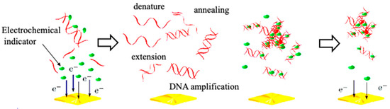 Scheme of electrochemical change linked with PCR amplification.