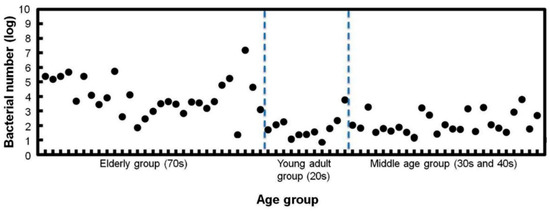 Electrochemical measurement of periodontal bacteria in saliva with different age groups [15]. Saliva samples were collected from 20s group (18 people) 30~40s group (24 people) 70s~group (33 people).