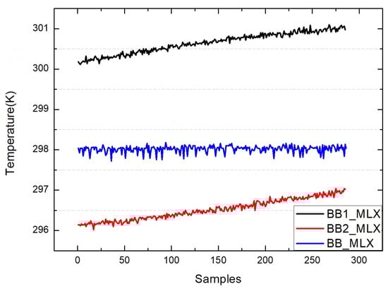 Measurement results of an MLX90614 infrared thermometer directly aimed at a high-temperature blackbody (BB1_MLX), ambient-temperature blackbody (BB2_MLX), and standard blackbody (BB_MLX).