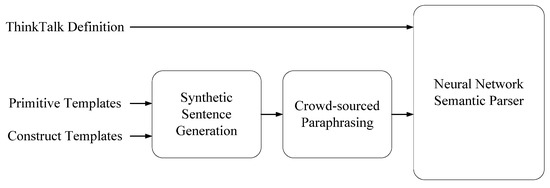 - Campagna, G.; Ramesh, R.; Xu, S.; Fischer, M.; Lam, M. Genie: A Generator of Natural Language Semantic Parsers for Virtual Assistant Commands. In Proceedings of the 40th ACM SIGPLAN Conference on Programming Language Design and Implementation, Phoenix, AZ, USA, 22–26 June 2019. [Google Scholar]