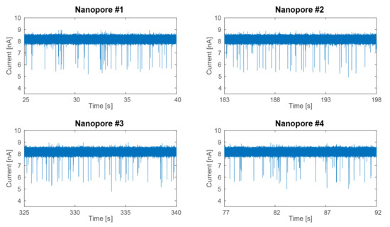- Kasianowicz, J.; Brandin, E.; Branton, D.; Deamer, D.W. Characterization of individual polynucleotide molecules using a membrane channel. Proc. Natl. Acad. Sci. USA 1996, 93, 13770–13773. [Google Scholar] [CrossRef] [Green Version]
