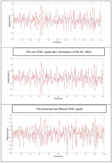 Figure 3 shows the steps for the processing and filtering of the raw EMG signal.