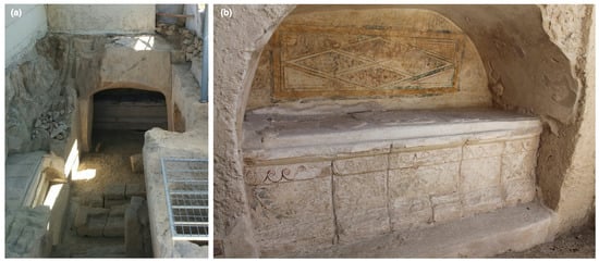 - Raptou, E. A painted Roman tomb at Paphos (PM 3510). Mediterr. Archaeol. 2004, 17, 311–321. [Google Scholar]