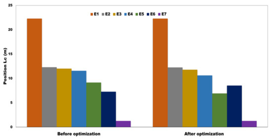Location of the equipment’s comparison from the CB center (Lc) before optimization and after optimization.