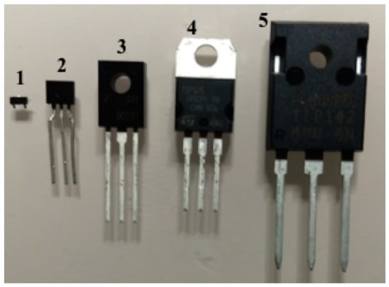 - Central Semiconductor. TIP41 Datasheet. Available online: https://my.centralsemi.com/datasheets/TIP41.PDF (accessed on 15 November 2021).