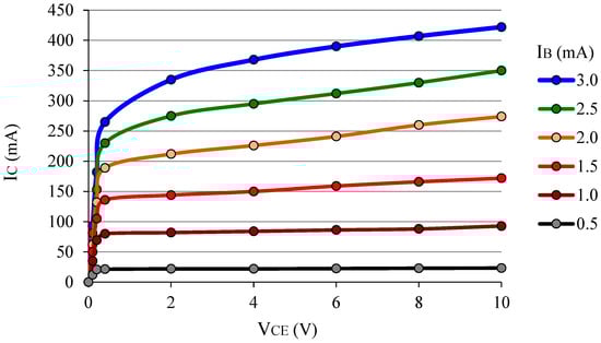 - Central Semiconductor. 2N3903 datasheet. Available online: https://my.centralsemi.com/datasheets/2N3903.PDF (accessed on 2 December 2021).