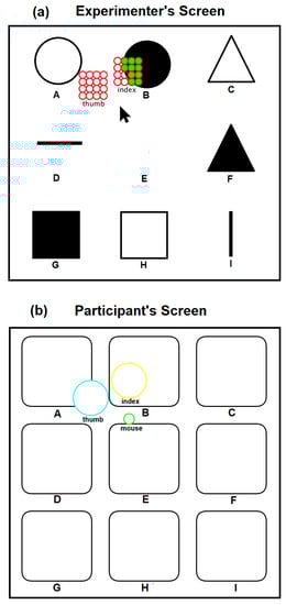 The integrated experimental setup is shown in Figure 8. The high-resolution haptic hand wearable is wirelessly connected via classic Bluetooth or WiFi. The hand will hover to a Leap Motion Controller that will track the hand pose and positions of the fingertips. The six 4 × 4 tactile matrices in the simulator are pegged on the coordinates of the fingertips and wrist. As the hand or fingers move, the tactile matrices in the simulator move across the computer display. The simulator tracks the changes in each of the tactile matrices and sends a corresponding signal to the microcontroller to activate or deactivate the corresponding tactile actuator in the haptic hand wearable. Aside from Leap Motion Controller, our fingertip tactile matrix simulator can be driven using a mouse, as shown in Figure 9. Our simulator and wearable haptic prototype have the novelty of easily converting any computer mouse into a tactile mouse similar to the tactile mouse by Watanabe et al. [63], Hribar et al. [64], and Owen et al. [65]. The idea is when the surgeon hovers over the object on the screen and feels it by actuating fingertips, similar to how a surgeon would feel more subtle information via fingertips in open surgeries [42,43].