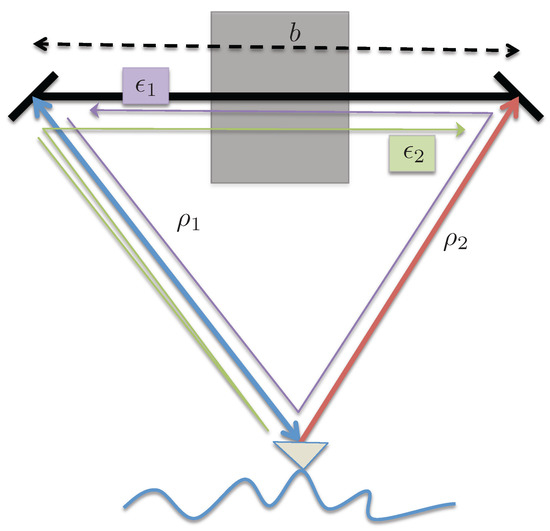 Consider that the received signal at the respective antenna bounces off and is received by the other aperture after traveling an additional path length (equal to the interferometric baseline). The signal paths for this scenario are illustrated in Figure 3.