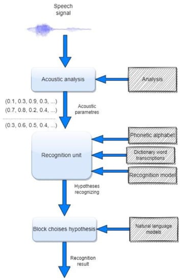 - Shelepov, V.Y. The concept of phonemic recognition of separately pronounced Russian words. Recognition of syn-tactically related phrases. Materials of international scientific-technical conference. Artif. Intell. 2007, 162–170. (In Russian) [Google Scholar]