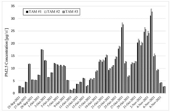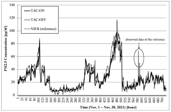PM concentrations of two TAM devices with TAC-on and TAC-off from 1–30 November 2021.