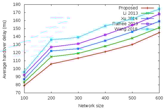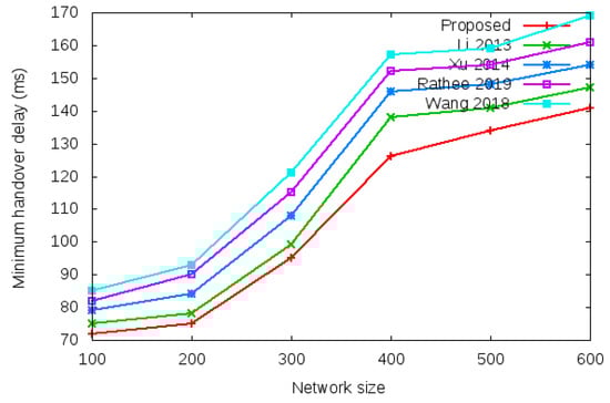 Table 8 and Figure 14 show the results of minimum handover authentication delay with the network size of 100 to 600 mobile clients.