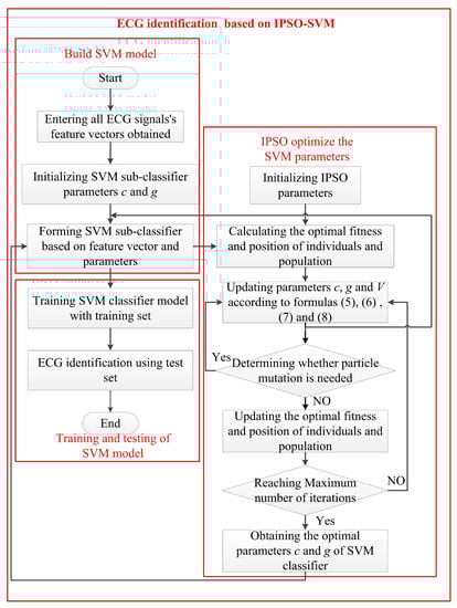 - In order to ensure the accuracy of SVM in ECG identification, this paper uses the IPSO-SVM algorithm to identify ECG signals; it can adaptively select penalty parameters and hyperparameters.