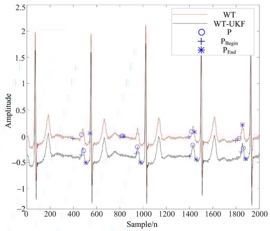 - In order to preserve the local characteristic information of ECG signals, this paper proposes the WT-UKF algorithm to filter ECG signals, which preserves the characteristics of the signals under the premise of a good filtering effect, and improves the feature point extraction of P waves and T waves.