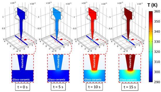2.4. Numerical Simulation of the Temperature Distribution