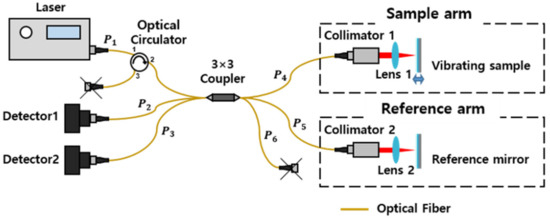 - Park, S.; Lee, J.; Kim, Y.; Lee, B. Nanometer-Scale Vibration Measurement Using an Optical Quadrature Interferometer Based on 3 × 3 Fiber-Optic Coupler. Sensors 2020, 20, 2665. [Google Scholar] [CrossRef] [PubMed]