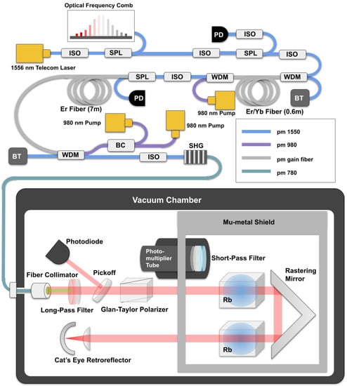 - Martin, K.W.; Phelps, G.; Lemke, N.D.; Bigelow, M.S.; Stuhl, B.; Wojcik, M.; Holt, M.; Coddington, I.; Bishop, M.W.; Burke, J.H. Compact Optical Atomic Clock Based on a Two-Photon Transition in Rubidium. Phys. Rev. Appl. 2018, 9, 014019. [Google Scholar] [CrossRef] [Green Version]
