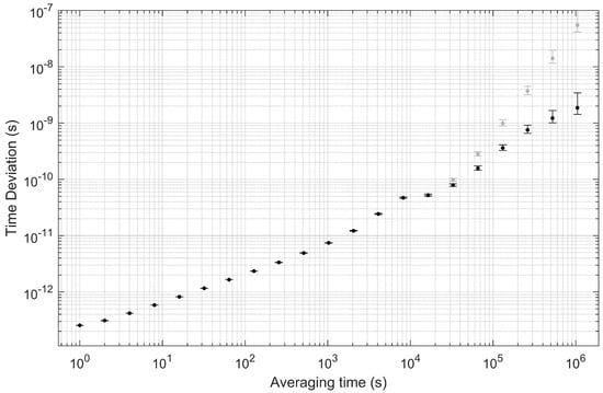 - Howe, D. The total deviation approach to long-term characterization of frequency stability. IEEE Trans. Ultrason. Ferroelectr. Freq. Control 2000, 47, 1102–1110. [Google Scholar] [CrossRef] [PubMed]