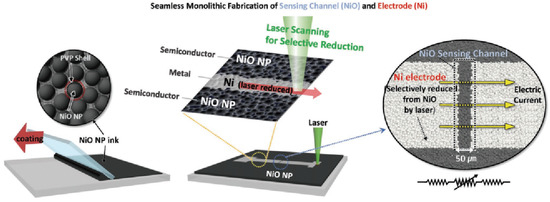 | NiO | 8162 | PET | Monolithic laser-induced reductive sintering | [46] |