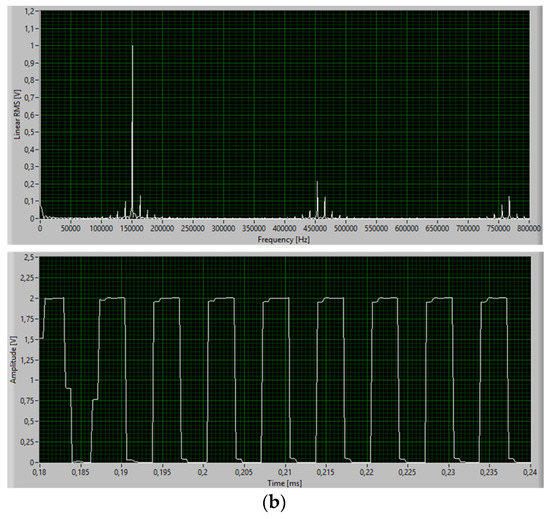 The aim of the system was the ability to sample and analyze analog signals with a frequency spectrum from 2.5 kHz up to 150 kHz. According to the Nyquist sampling theorem, the sampling frequency must be at least twice the maximum frequency that is contained in the signal and needs to be measured [15,20,21]: