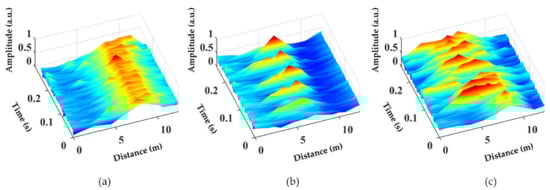 Time–space domain diagrams of three typical disturbance events: (a) hammer, (b) air pick, and (c) excavator.