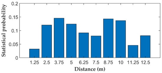 The space–time domain signals caused by the different disturbance events were preprocessed to form Dataset1, as shown in Figure 3. Each sample size in Dataset1 is 11 × 256, which contains 256 ms within a 12.5 m fiber length. The choice of sample size was based on the statistical analysis. More than 99% of the vibration durations and spatial fluctuation range were within the sample range. Figure 4 shows the statistical analysis of the spatial fluctuation range caused by vibration.