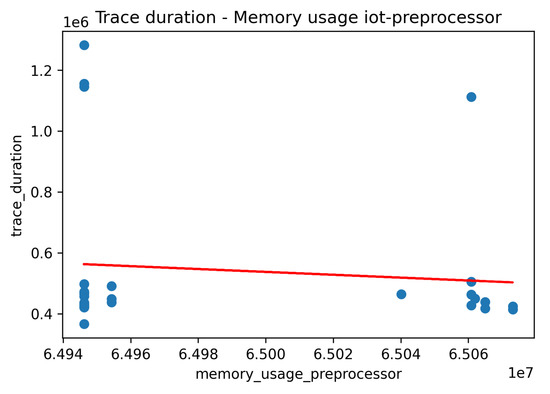 Correlation between trace duration and memory usage—IoT Preprocessor component.